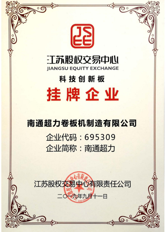 南通超力卷板機制造有限公司,國家高新技術(shù)企業(yè),中國卷板機機床專(zhuān)業(yè)設計、研發(fā)與制造企業(yè)。公司承擔國家火炬計劃項目3項,《JB/T12830-2016/數控二輥卷板機》、《JBCPZT0758-2016/數控矯圓機》行業(yè)標準起草單位,中國鍛壓協(xié)會(huì )會(huì )員,擁有W10、W11和W12等出口產(chǎn)品質(zhì)量許可證。