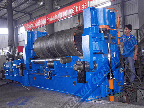 具備板端預彎功能,通過(guò)上輥水平移動(dòng),使上輥相對于下輥呈非對稱(chēng)位置來(lái)實(shí)現板端預彎。